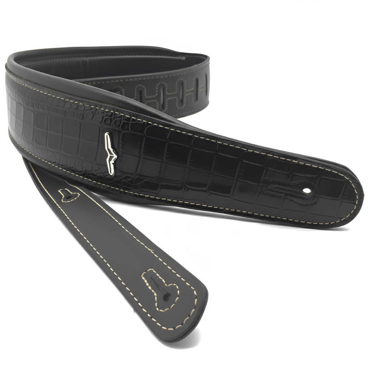 A correia CCC8 é um modelo clássico, fabricado em couro com textura crocodilo de alta qualidade, que une estilo e resistência. Conta com forro sintético especial que ajuda a evitar a absorção de suor, proporcionando maior conforto em apresentações prolongadas.