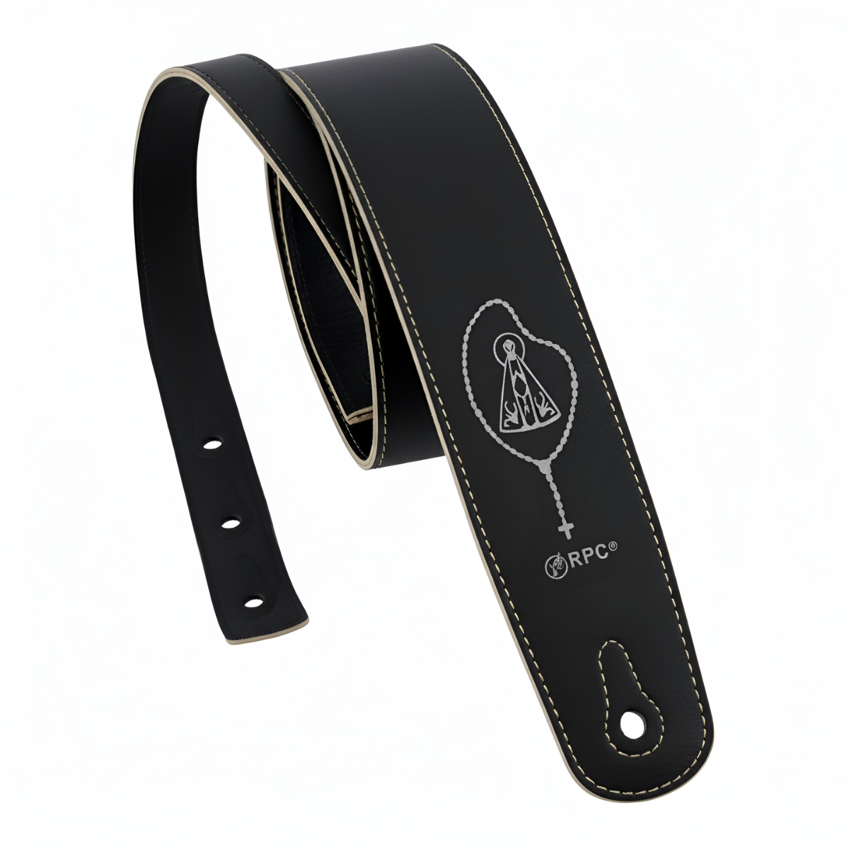 Correia Alça Nossa Senhora Terço Católico Preta Para Guitarra Violão