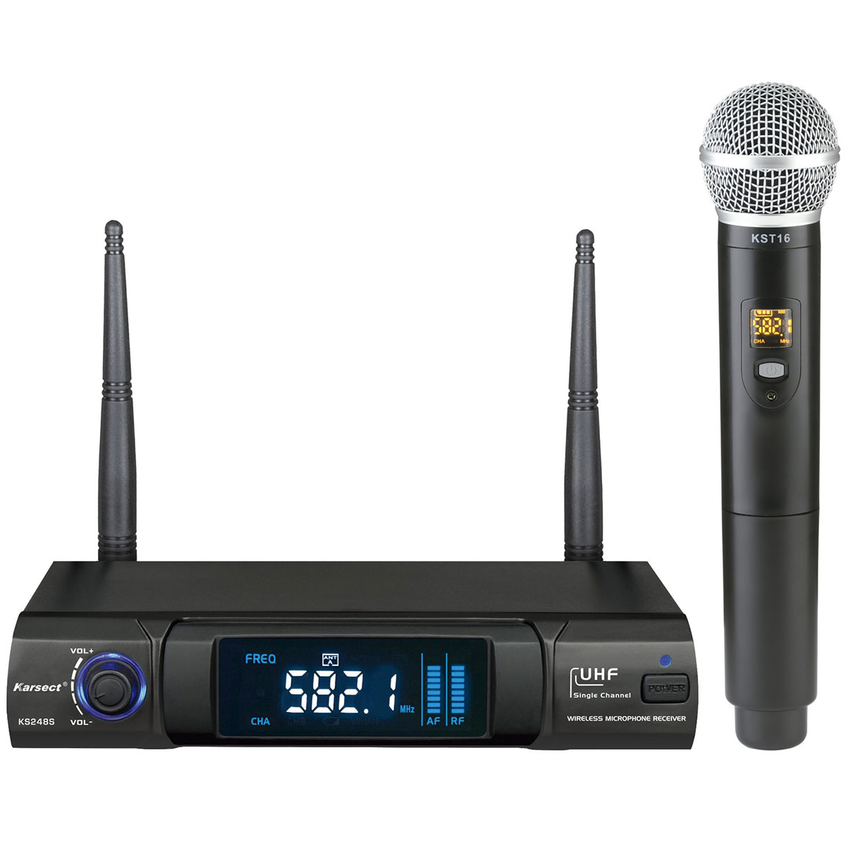 O Karsect é um sistema de microfone sem fio UHF de alta qualidade, projetado para oferecer excelente desempenho e clareza sonora. Ideal para apresentações, palestras, shows e eventos, ele conta com um receptor de canal único e um microfone de mão bem leve, garantindo mobilidade e liberdade para o usuário.