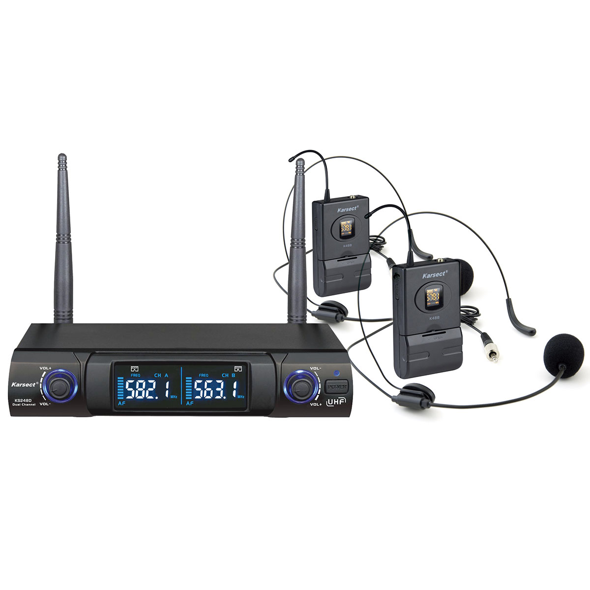 O Karsect é um sistema de microfone sem fio UHF de alta qualidade, projetado para oferecer excelente desempenho e clareza sonora. Ideal para apresentações, palestras, shows e eventos, ele conta com um receptor de dois canais, um transmissor bodypack compacto e um microfone headset confortável, garantindo mobilidade e liberdade para o usuário.