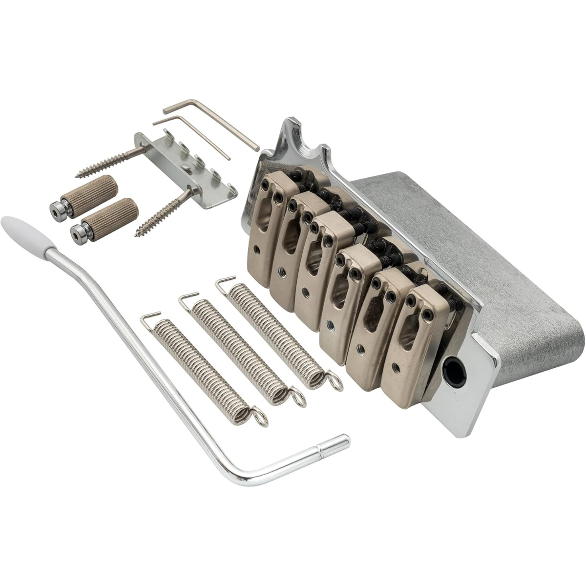 Além disso, sua construção com base em aço e bloco em liga de zinco proporciona ataque definido, sustain consistente e resposta equilibrada. Somado ao sistema de alavanca pop-in, que elimina folgas comuns em modelos rosqueados, o resultado é um upgrade que eleva o desempenho da sua guitarra para um padrão moderno de estabilidade.